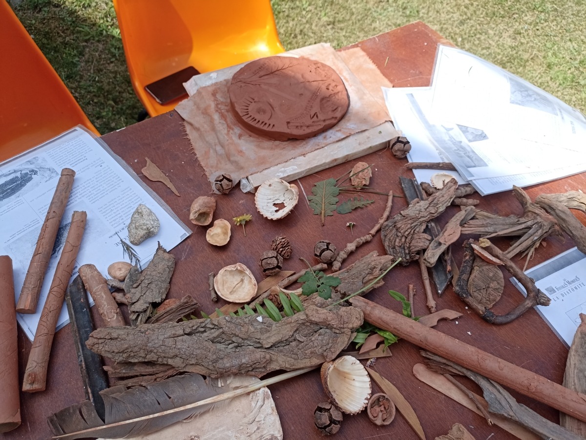 Nous réaliserons d’abord avec de l’argile une composition d’empreintes relevées dans notre environnement, puis celle-ci sera révélée par un tirage en plâtre que l’on patinera à l’aide de pigments naturels.