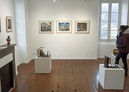 Mon travail d’assemblage, en créant des situations théâtralisées, essaie de mettre à l’honneur la poésie avec des moments de surprise et d’émerveillement, d’effectuer un pas de coté. Je travaille le collage depuis 15 ans, sur papier et sur toile, mélange de photos et de matériaux avec des techniques classiques : aquarelle, pastel, acrylique.