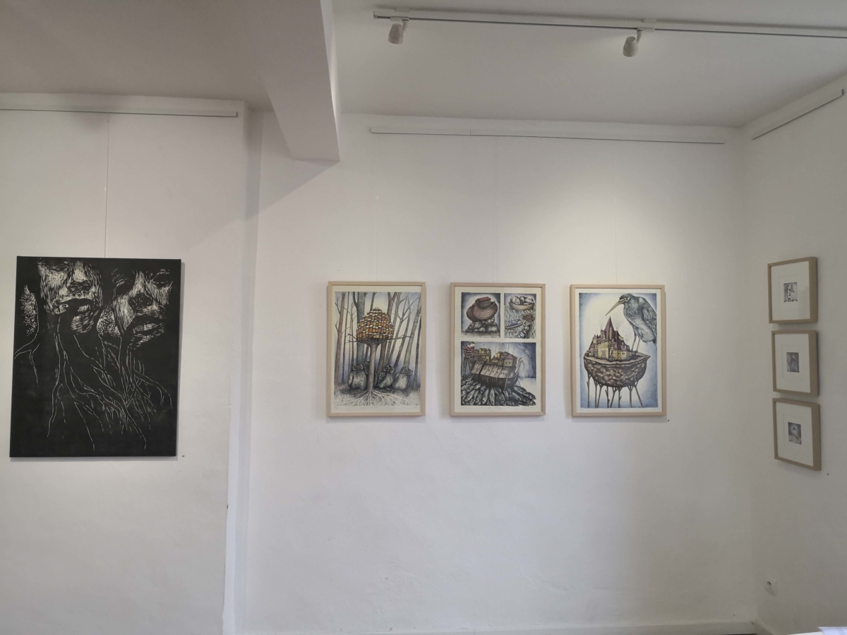 L’estampe me permet de développer le caractère graphique et narratif de mon travail, de construire un monde fourmillant et minutieux qui émerge sur le papier, laissant la trace d’une bribe d’histoire étrange et drôle à la fois.