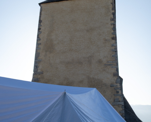 Dans le temps d’un bivouac, en collaboration avec les habitant.es des montagnes, ou pendant une traversée, différents regards s’arrêtent sur les interactions invisibles entre l’infiniment petit et le gigantisme des montagnes.
