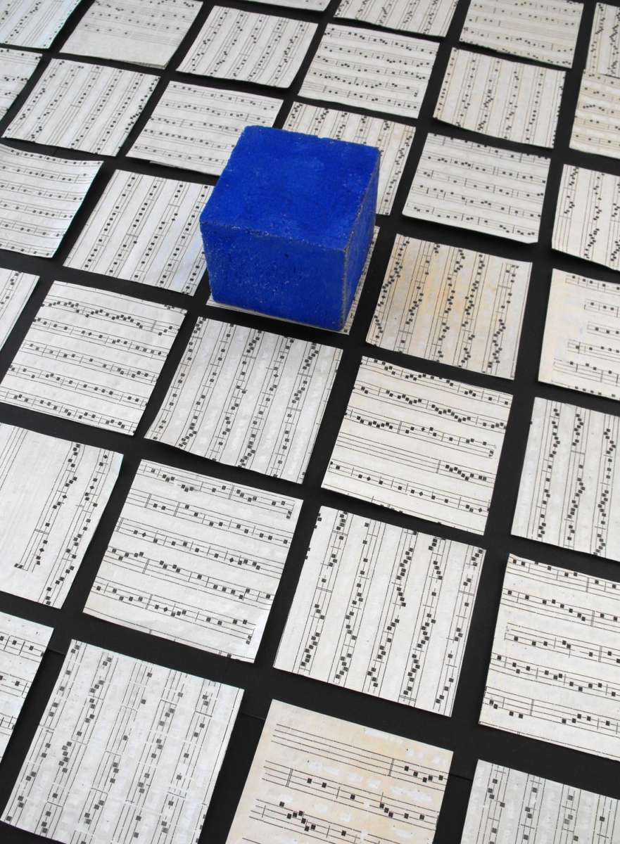 Autour du carré bleu iridescent de lumière, j’échafaude désormais une hypothétique cosmogonie basée sur l’étude des formes et de la matière. Fasciné par les mythes de l’Univers, je travaille sur la genèse de la géométrie, qu’elle provienne de la nature, des données de la science ou de croyances philosophiques plus anciennes.